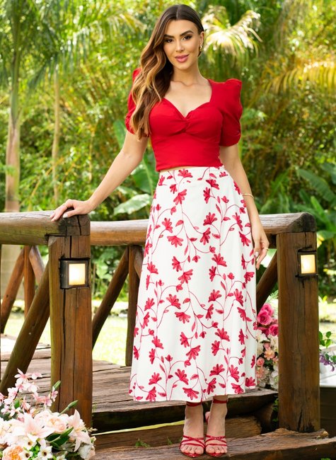 Perfeito para ocasiões especiais ao ar livre, jantares românticos e eventos diurnos elegantes. O Red Garden se adapta ao clima da estação — use a saia com o cropped mais delicado para o dia e troque pelo modelo estruturado à noite.